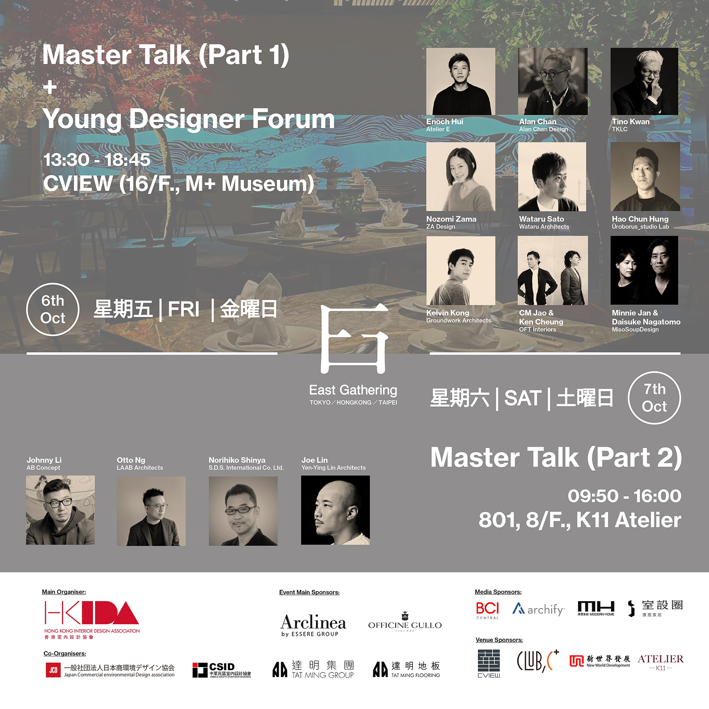 Founded in 2010, East Gathering (EG) was a collaborative initiative by the Hong Kong Interior Design Association (HKIDA), the Japanese Commercial Environment Designers Association (JCD), and the Korean Society of Interior Designers (KOSID). The EG family has been growing bigger ever since founded and we had Chinese Society of Interior Designers (CSID) from Taiwan joined in 2016 and Society of Interior Designers Singapore (SIDS) participated in 2018 respectively. The event aims to attract design professionals, design students and the general public by making them aware of the aesthetics and philosophy of Asian interior design.