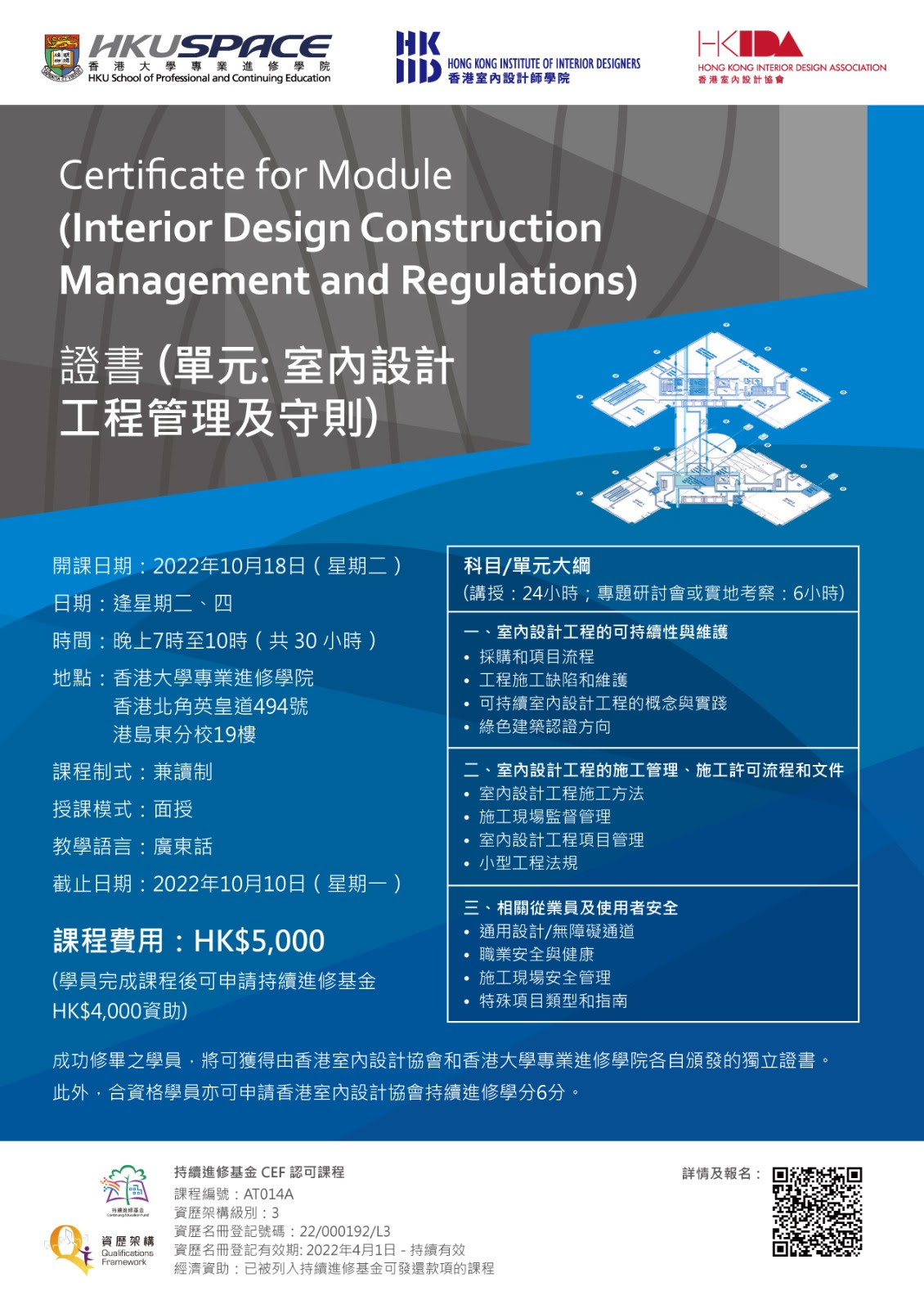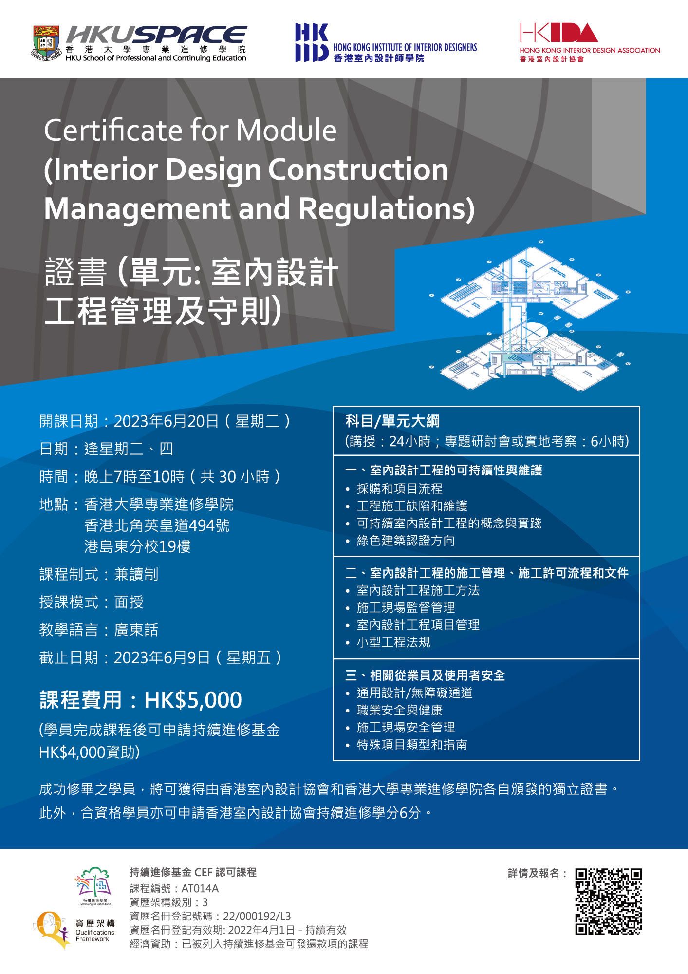 Enrollment: https://etickets.hk/tc/project/hkida/cpd2designandlicensing/