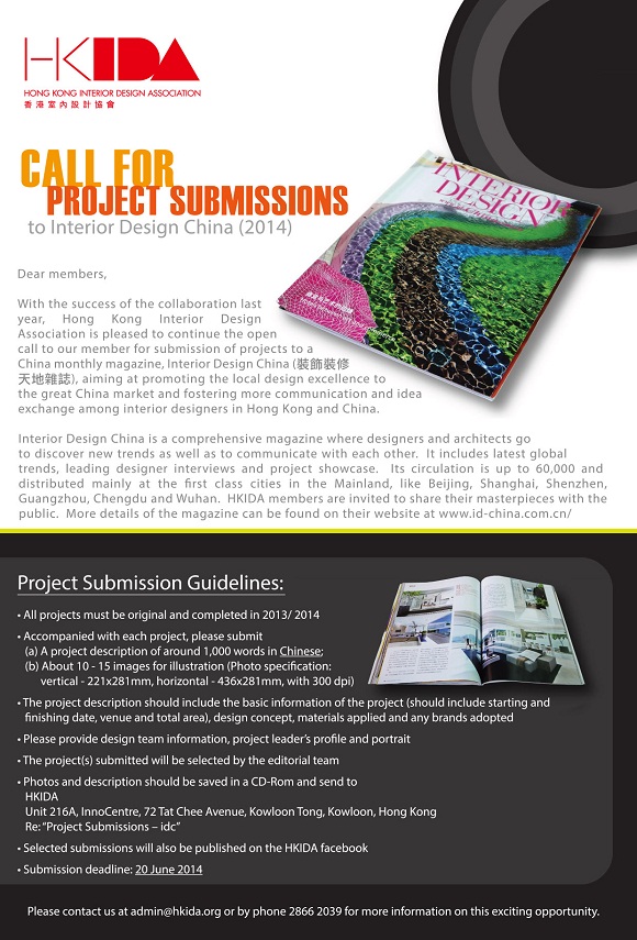 Call for entries for the “NEW DESIGN FORCE” to display their works at the IDT EXPO from 4th to 6th December 2014 in Hong Kong Convention and Exhibition Centre